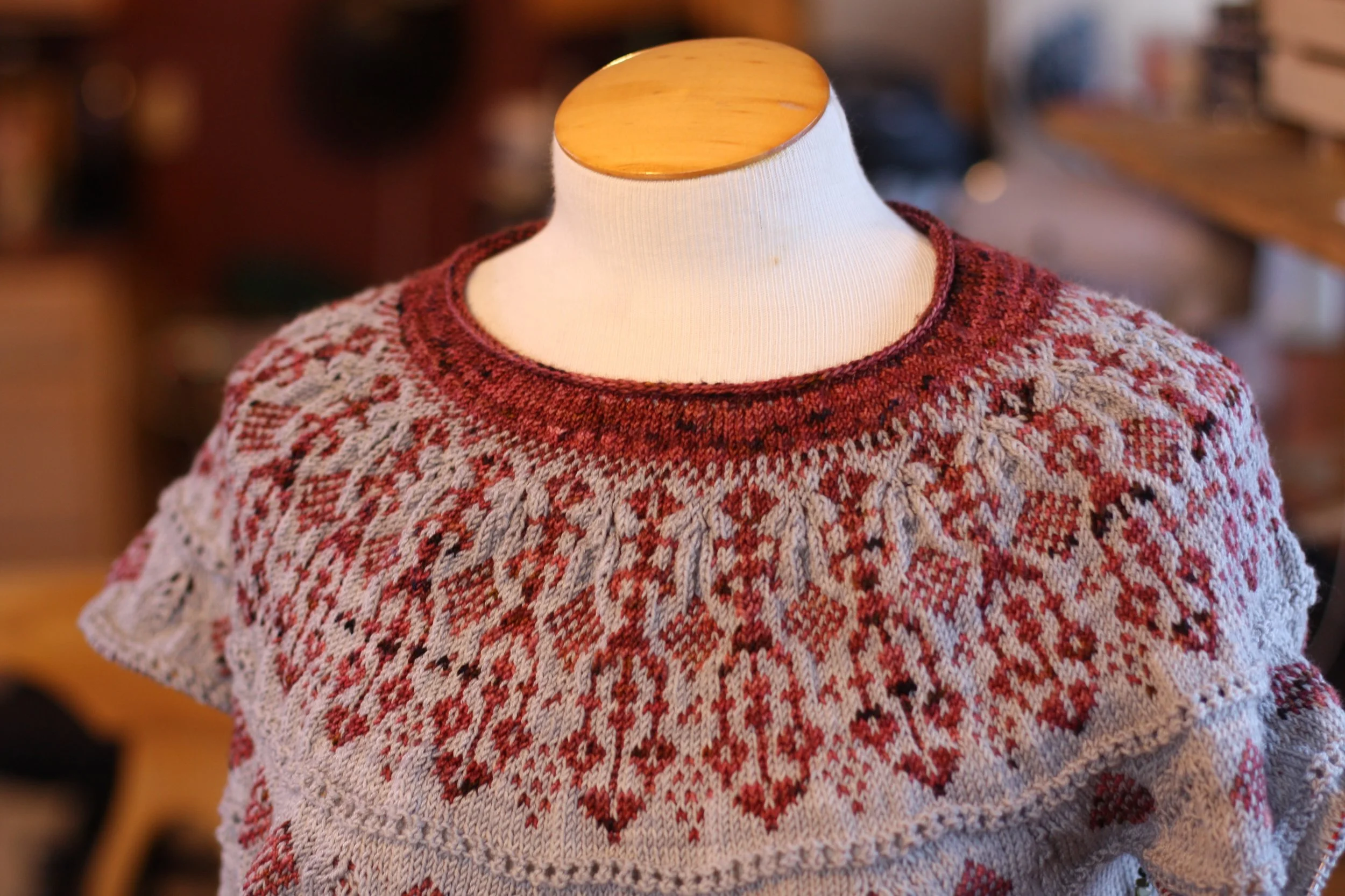 I’ve fallen deeply in love with colorwork. It is so fun and so satisfying. Colorwork yoke sweaters though, mean that after the fun part there is still the slog of stockinette through the body and sleeves. I have my eye on all-over colorwork sweaters for my next projects!