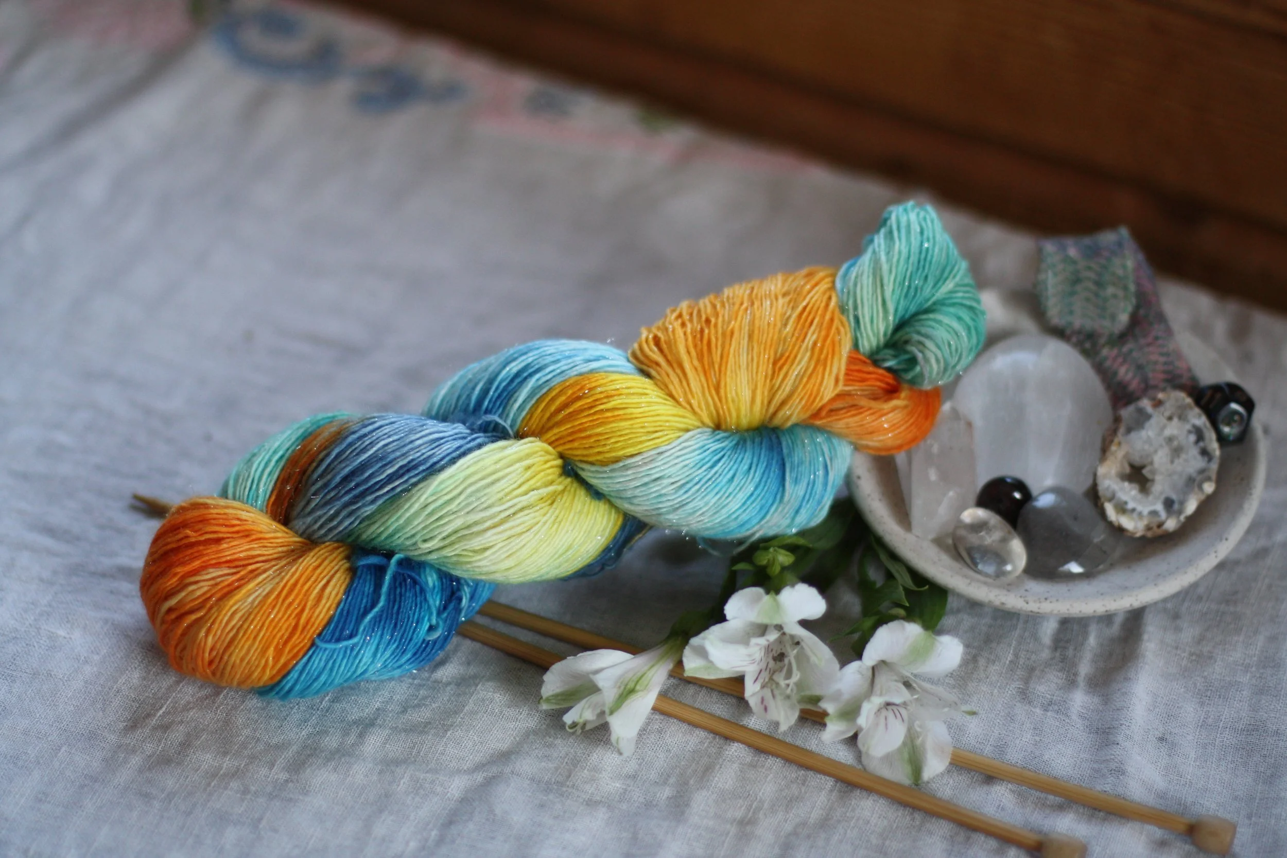 Your Custom Text Here Categories: All 7300 Hours Accessories Alaska Collection Austen Collection Baby Fox Bag Birth Christmas Earrings Fiber for Spinners Greeting Card Halloween Handspun Merch Natural Dyes Poison Path Queen of Pentacles Shakespeare Shawl Stitch Marker Tarot Wall Art Wearable Art Yarn Zipper Pouch All / Winter's Dream : Handspun self striping sparkle yarn $112.00 Forest Ride Handspun Yarn $225.00 Foxish Handspun Skein $134.00 Silvered Fox Handspun Yarn $55.00 Sleigh Ride Handspun Yarn $196.00 Sentani Rainbow Fish from $30.00 Franklin's Bumblebee from $30.00 Fireweed Fields mini bouquet on Snowy Day Sock $35.00 Sold Out "If I loved you less, I could talk about it more" - Mr. Knightley : The Austen Collection Sock Yarn $15.00 Macarons: handspun Rambouillet/Rose viscose yarn, handspun DK yarn, Tour de Fleece from $67.00 Wintermint Chocolate Chip Handspun luxury yarn: merino shetland mint viscose BFL $20.00 After the Rain ROYgbiv on Winter Worsted non-superwash natural merino wool yarn $30.00 Trim the Tree Mini Bouquet on Snowy Day Sock $49.00